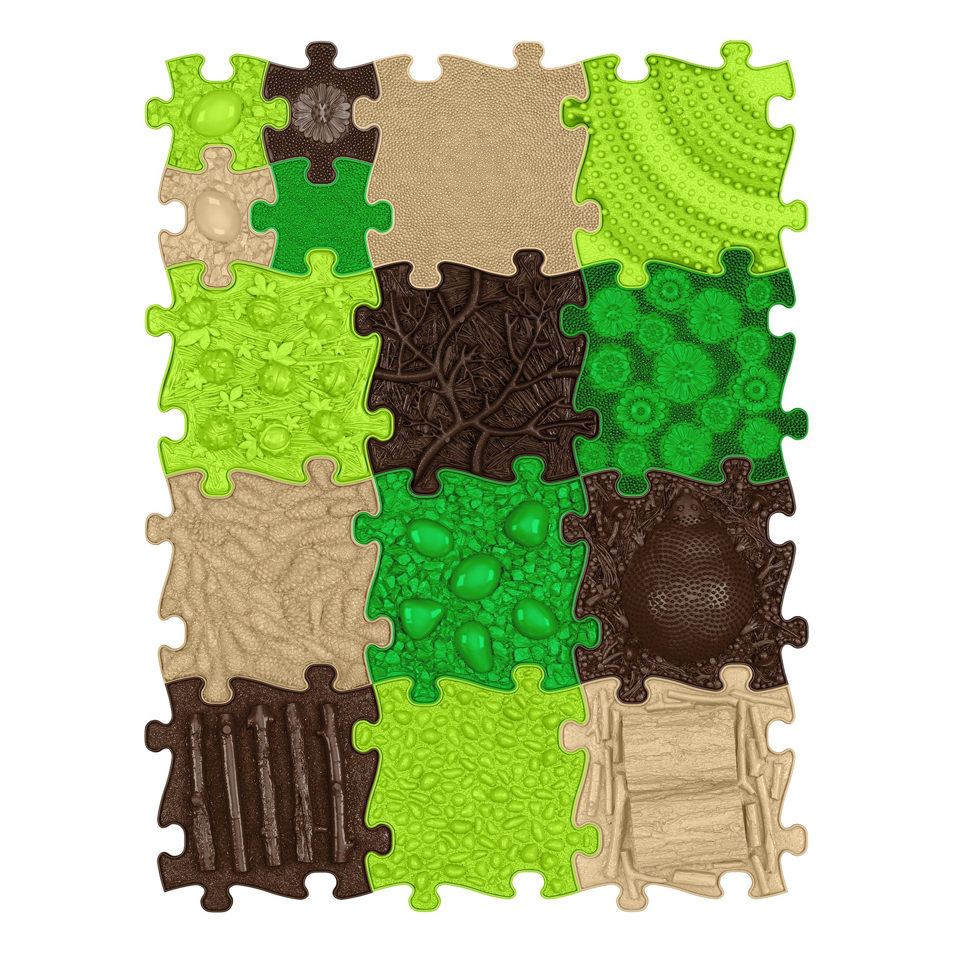 Вдъхновен от естествени повърхности в гори и поляни, този комплект предлага уникални текстури, които наподобяват треви, корени и камъчета. С нюанси на зелено, бежово и кафяво, ще почувствате сякаш се разхождате сред природата, дори и в забързаното градско ежедневие.